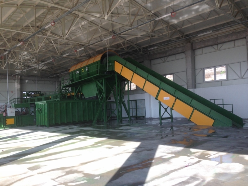 Waste material is feeded to bag opener bunker ,under the bunker there is an impact-resistant, steel plate and inclined feeding conveyor, designed for operation in hard conditions.